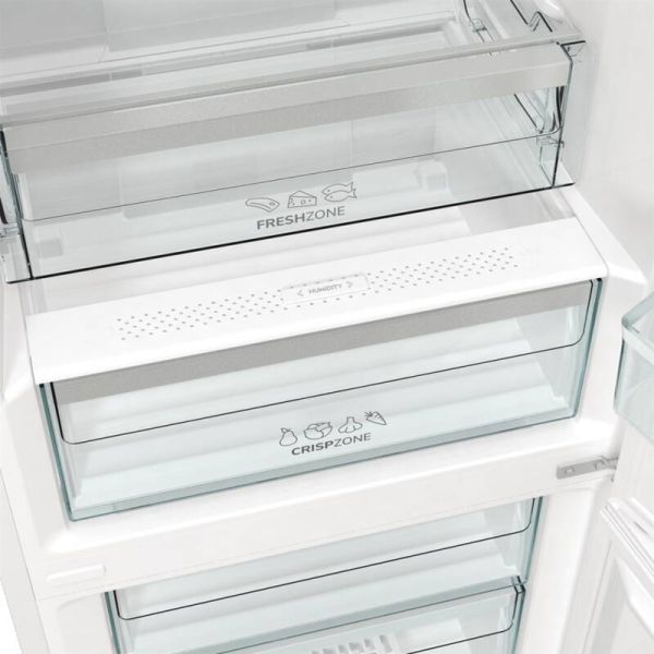 Chladnička Gorenje v bílém provedení disponuje speciální funkcí AdaptTech, která se naučí vaše zvyky. Díky čemuž bude vždy zajištěna konstantní teplota uvnitř spotřebiče. O ideální prostředí pro čerstvé potraviny se postará větrací systém MultiFlow 360°, který rovnoměrně distribuuje chladný vzduch. Jistě oceníte i prostornou zásuvku CrispZone s technologií HumidityControl. Ta je určena k uložení zeleniny a ovoce. O kvalitu mražených potravin se stará technologie FastFreeze, díky které si potraviny zachovají prospěšné látky a minerály.